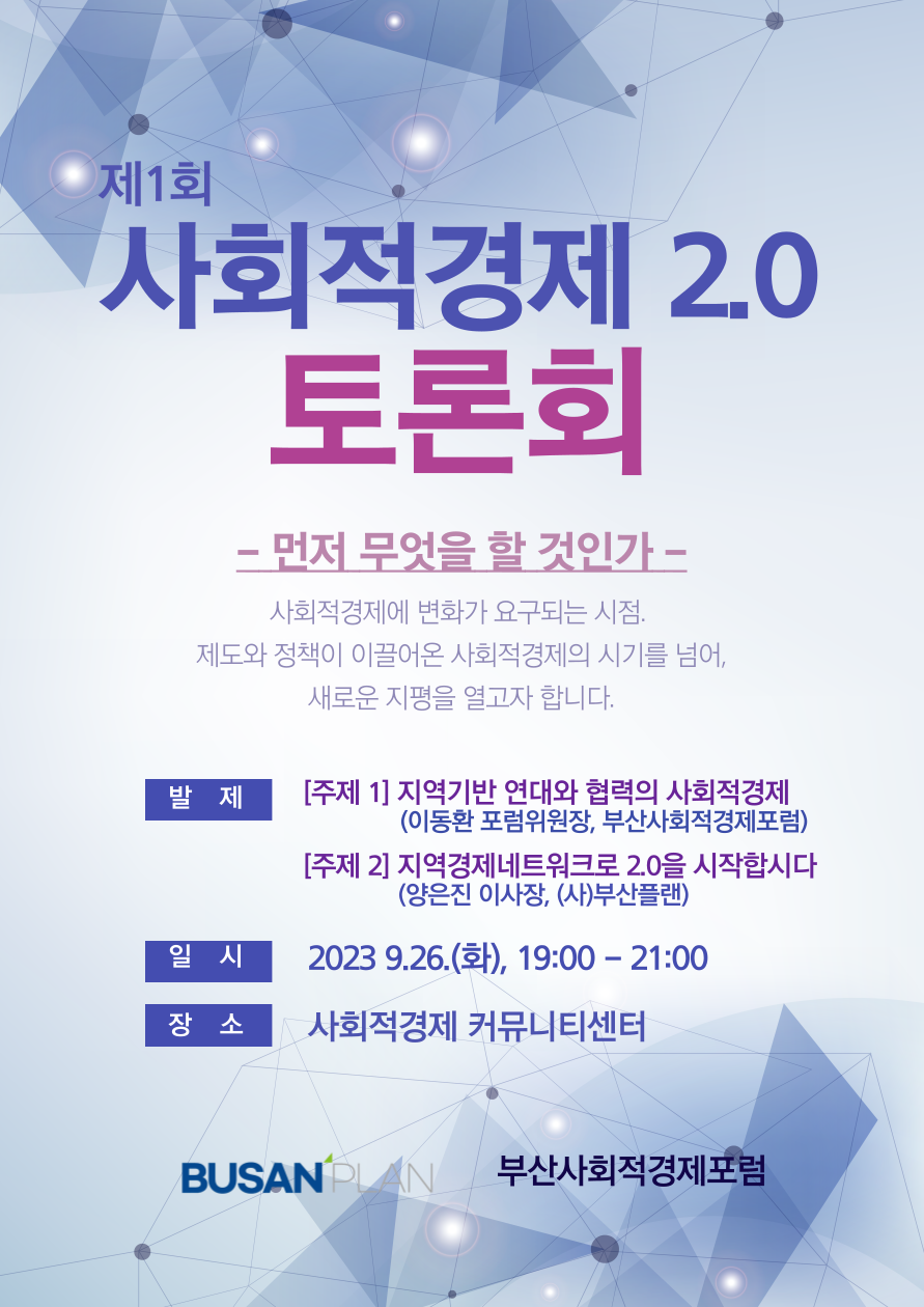 제1회 사회적경제 2.0 토론회를 개최합니다.