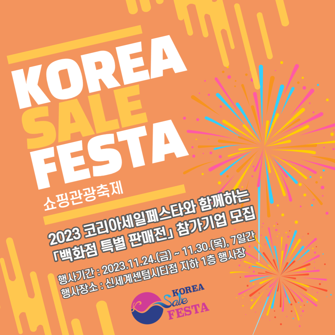 공 고 명 : 2023 코리아세일페스타와 함께하는 백화점 특별 판매전 참가기업 모집